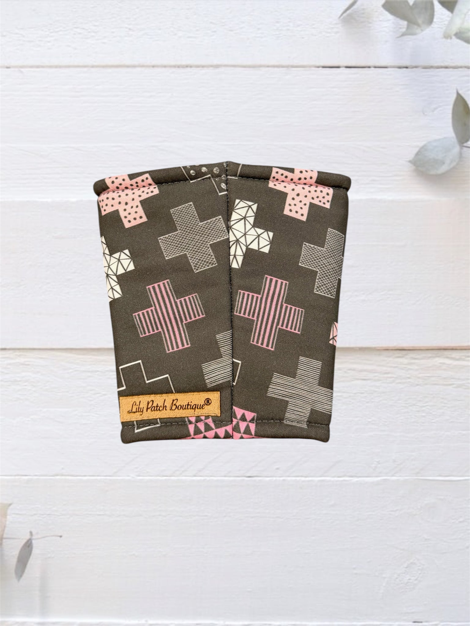 Each cup cozy is made in my home studio with premium cotton fabrics and insulated material in between the beautiful cotton fabrics to keep your drinks cold.